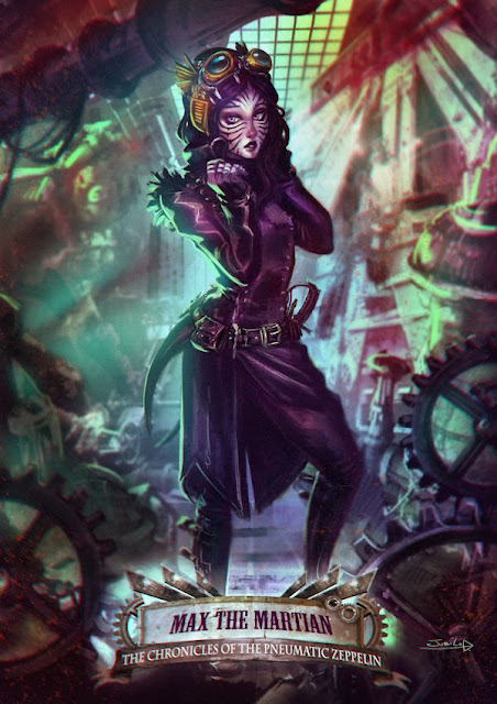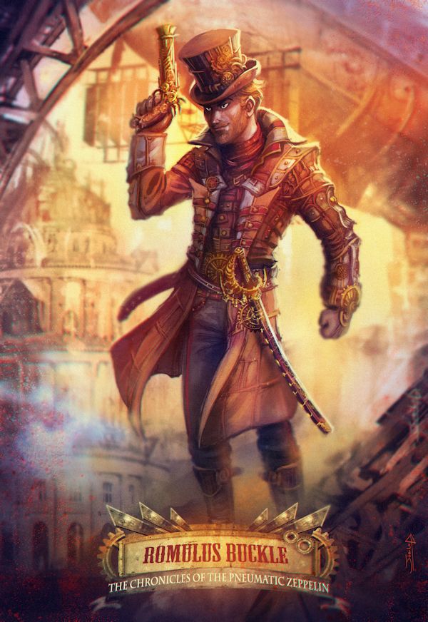 "I wanted my three main steampunk characters in the Chronicles of the Pneumatic Zeppelin series, Romulus, Max and Sabrina, to come alive as images; I wanted them to be accurate, but I also wanted to find an artist with a great style and allow plenty of room for his/her interpretation of the characters as they were written on the page. Daniela Giubellini, with her wonderful talent, captured the spirit and look of the characters immediately, and I am thrilled with the color, sass, and adventurous aura of these three images and the characters they represent."